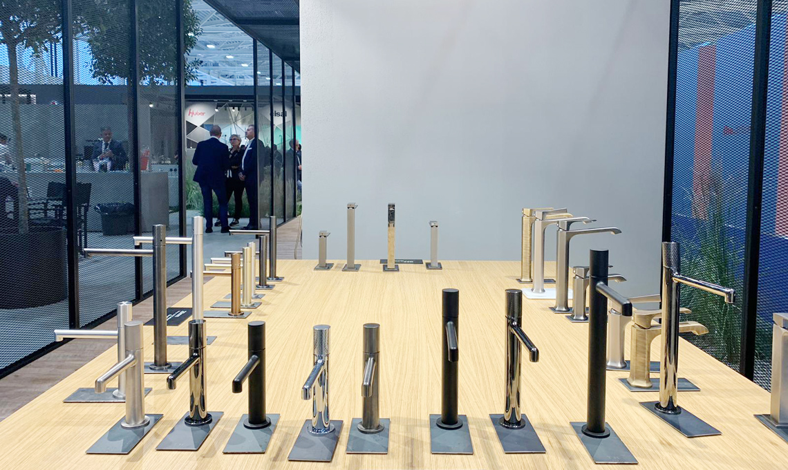 In fiera l'esposizione mostra la vasta gamma di miscelatori.