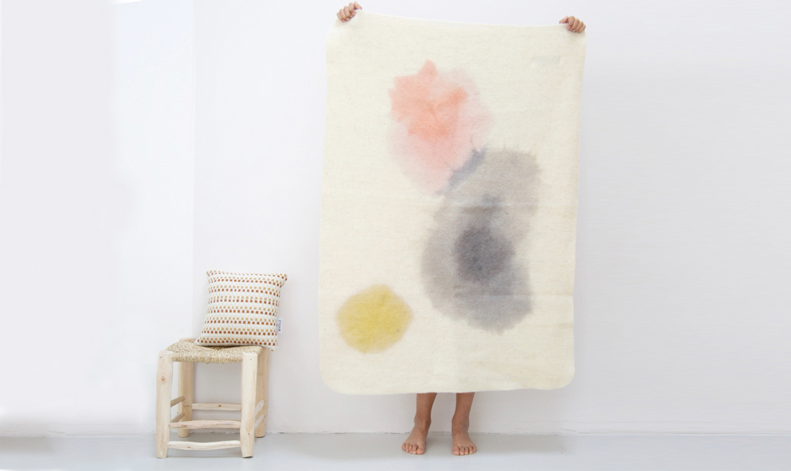 Il plaid è ricavato da lana francese biologica e tinto artigianalmente. Ogni pezzo è unico e leggere variazioni possono essere presenti da un pezzo all'altro, attestando la fattura alla mano.