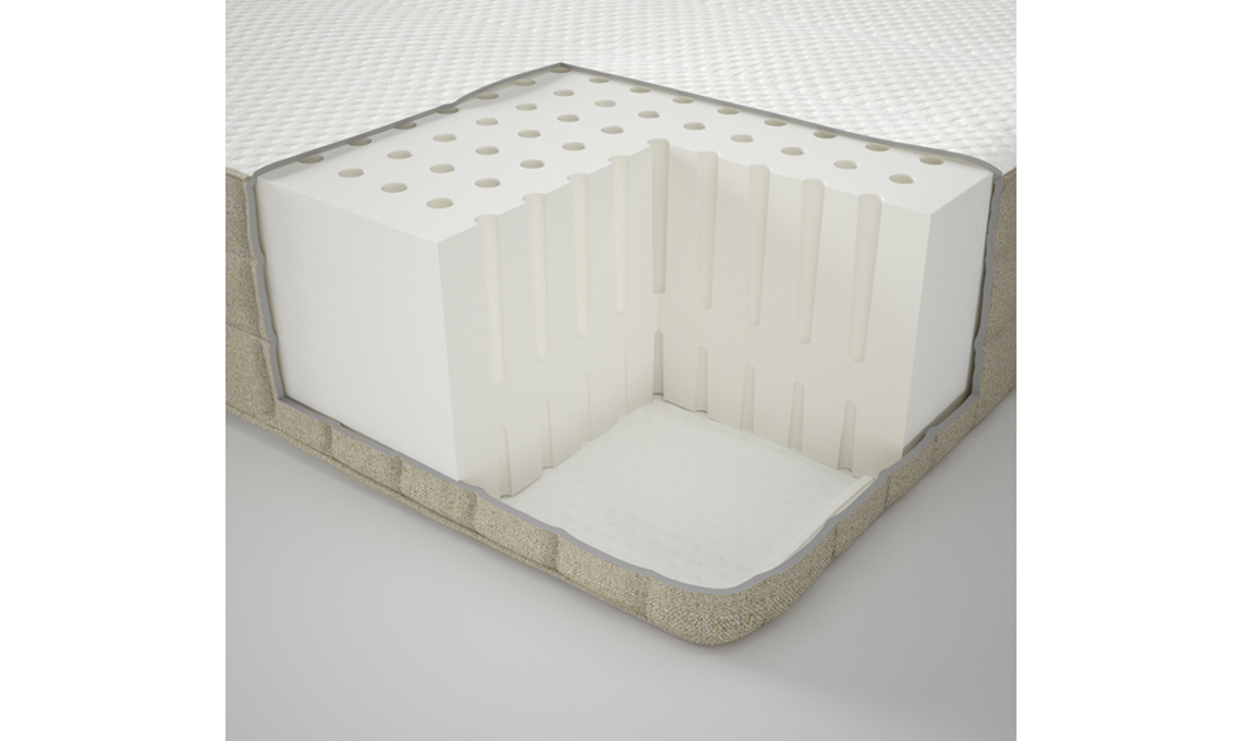 In lattice naturale e traspirante, Mausund si adatta al contorno del corpo per offrire un sostegno localizzato dove serve. Il rivestimento e l’imbottitura in materiali naturali come lana, cotone e lino lasciano circolare l’aria nel materasso garantendo un microclima ideale [Ikea].