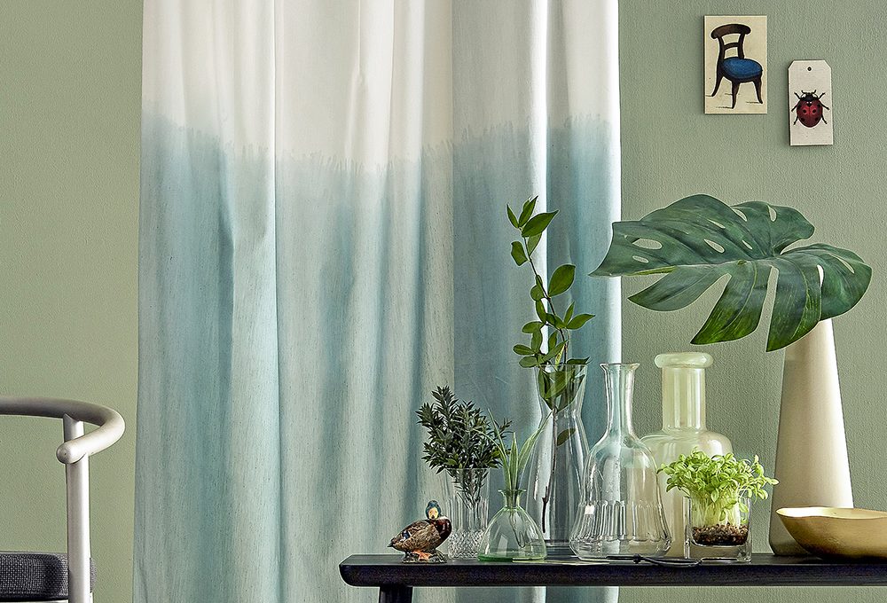 Basta colorare una parte di una tenda bianca con il ‘tie&dye’, tecnica che consiste nell’annodare una porzione del tessuto e poi immergerlo nel colore specifico per tessuto, affinché si colori soltanto un bordo o una fascia.