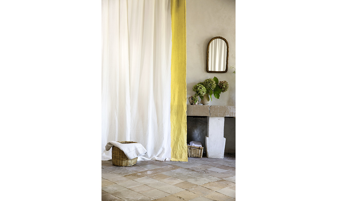 Effetto tie&dye: Ha una banda laterale stampata in modo irregolare su tessuto in puro lino, la tenda già confezionata e pronta per essere appesa. Paintbrush di Élitis è disponibile in 6 tinte.