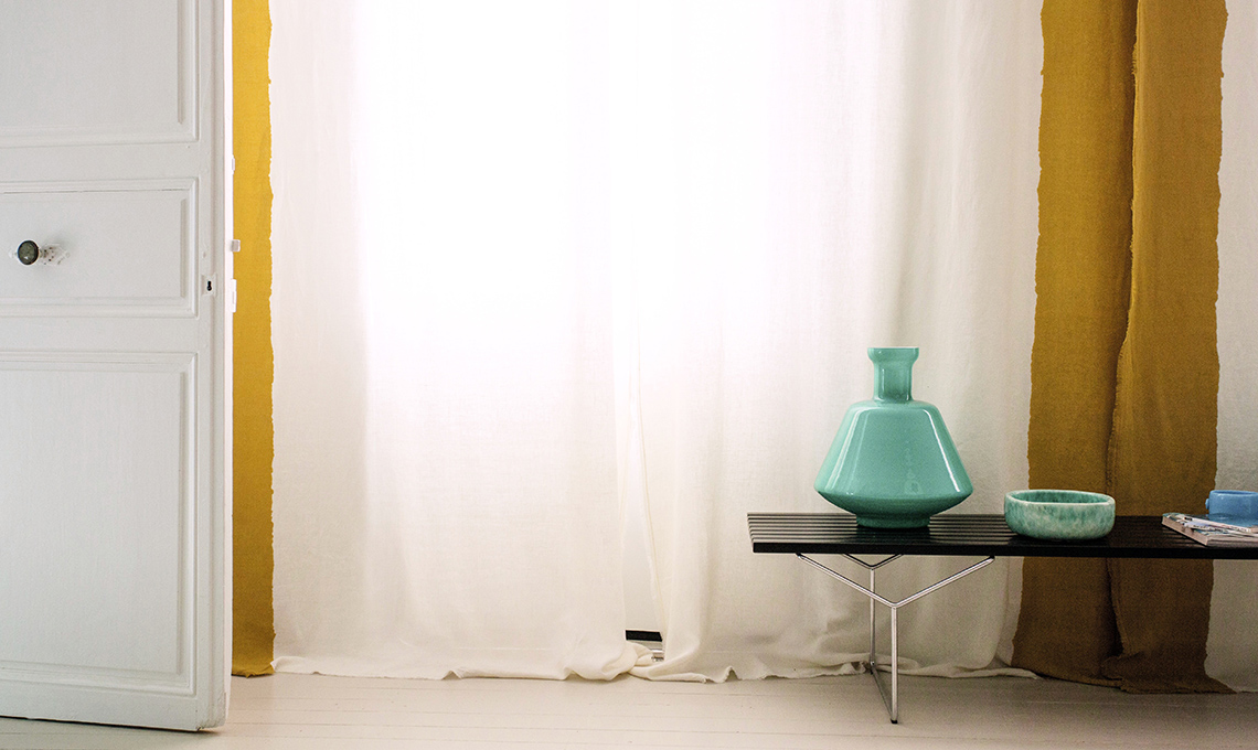 Campiture irregolari per la tenda Paintbrush in 100% lino di Élitis, venduta confezionata e pronta per l’uso.