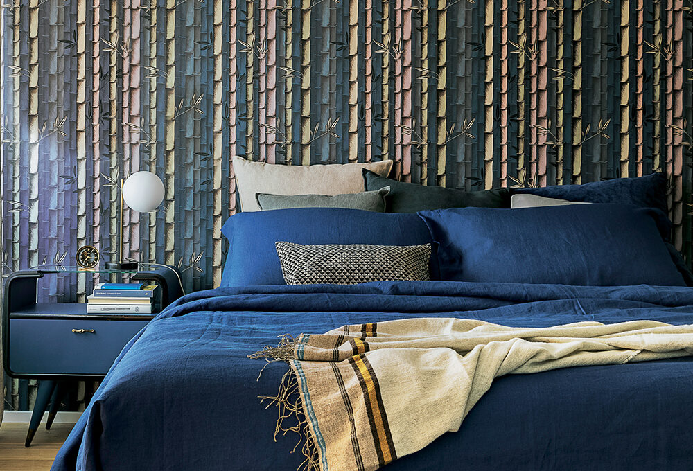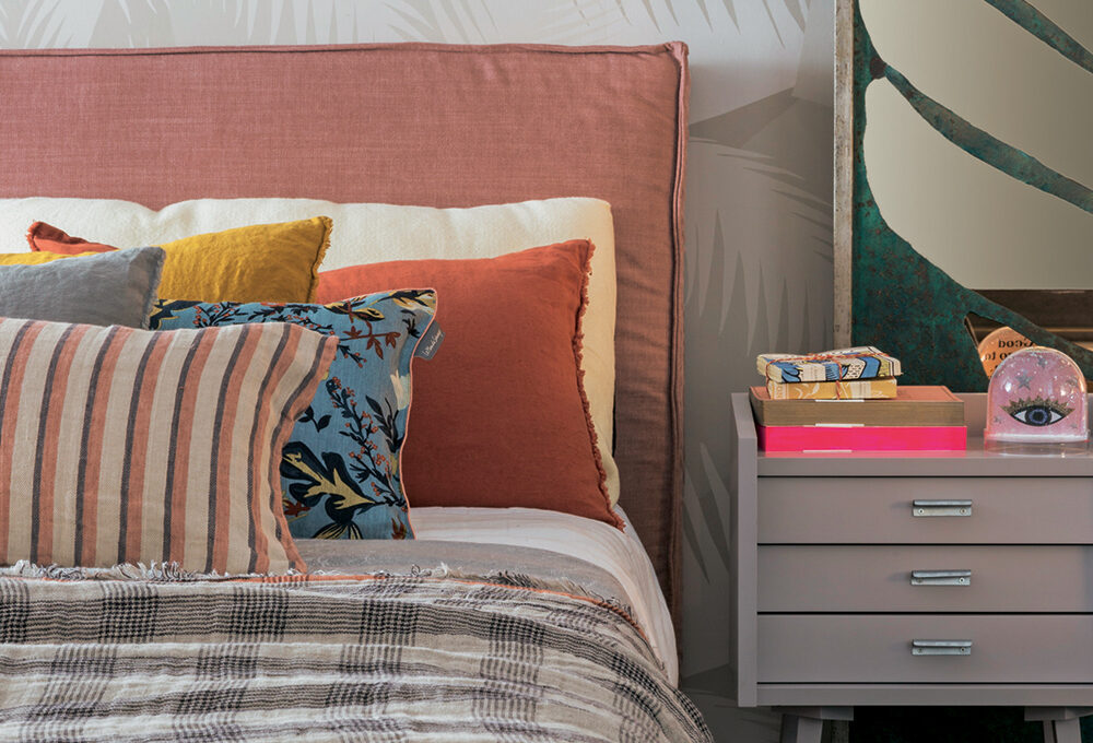 Al tono champagne di base, si abbinano verdi, azzurri ma anche bordeaux. In foto, le lenzuola in raso disponibili in 72 colori [PerDormire € 46 il lenzuolo sotto, € 49 il lenzuolo sopra e € 30 le 2 federe a sacco].