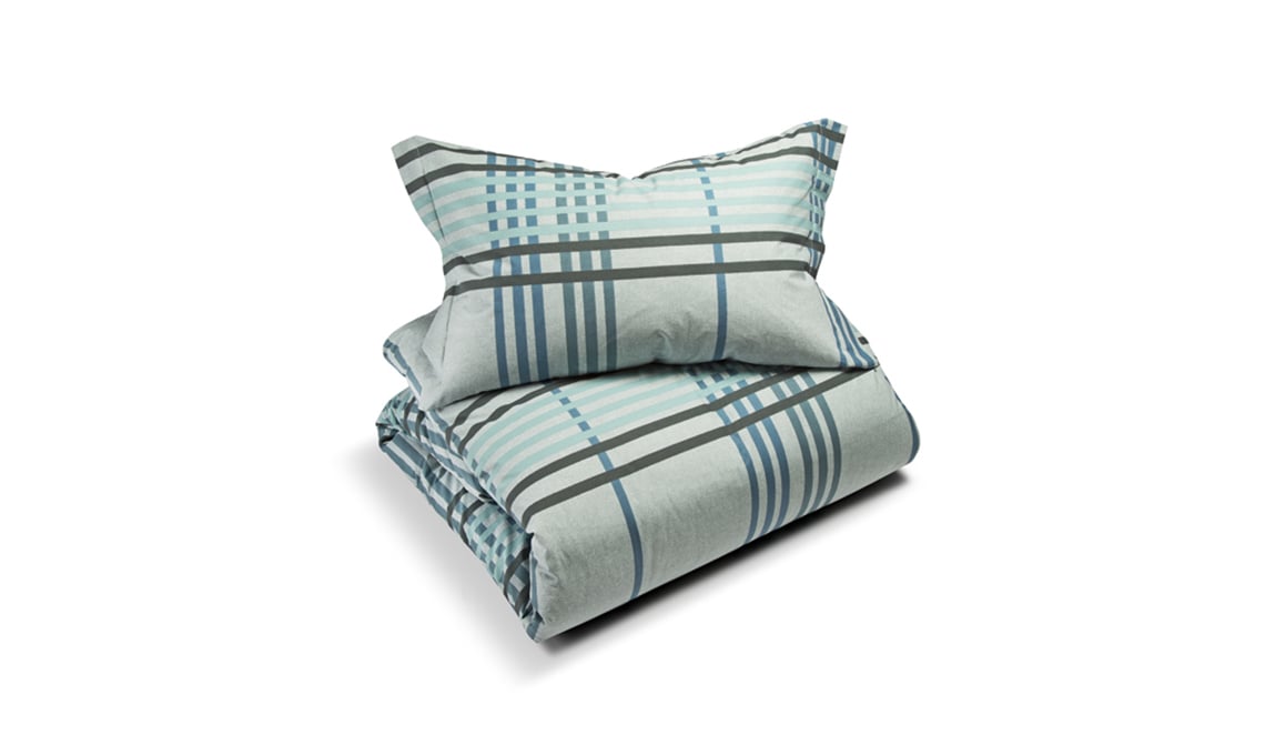 Completo copripiumone scozzese Mossruta in flanella spazzolata dalla texture supervellutata [Ikea, il sacco con 2 federe da cm 50x80 € 29,95].