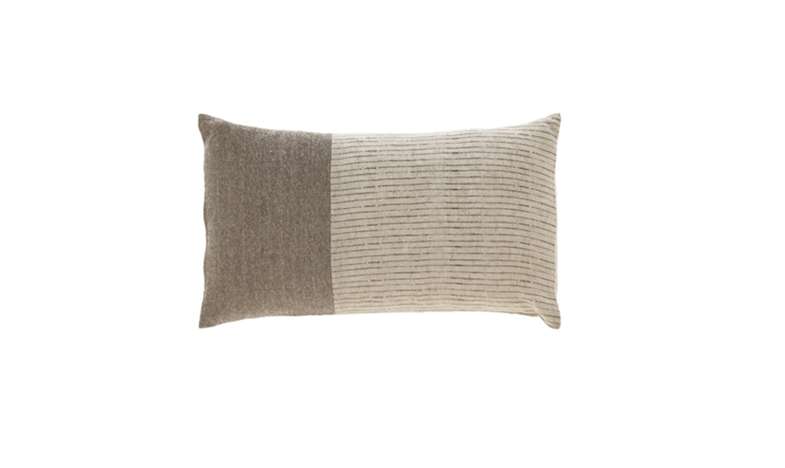 Flair Cushion in versione rettangolare Black Grid in bianco, grigio e nero [Normann Copenhagen, cm 35x60 €74].