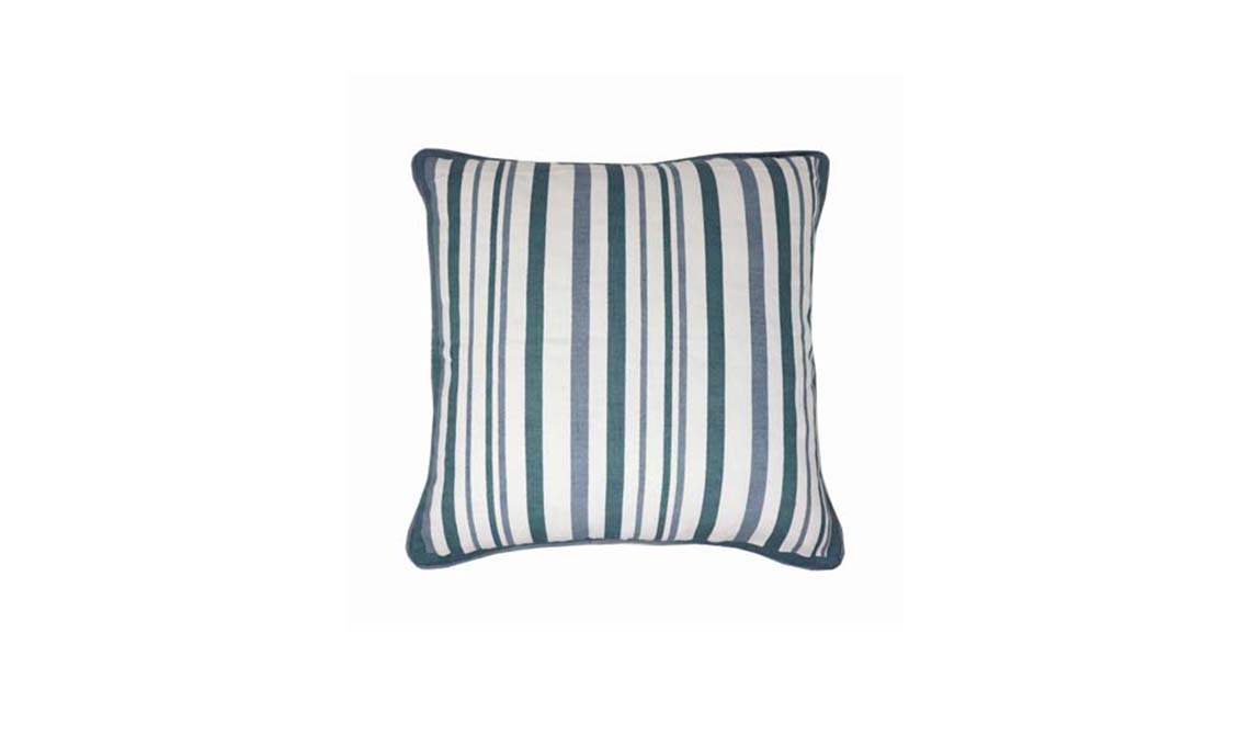Cuscino a righe quadrato Camelia in verde e avio in 100% cotone [Bella Vita, cm 40x40 € 12,90].