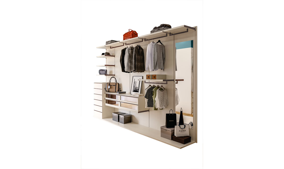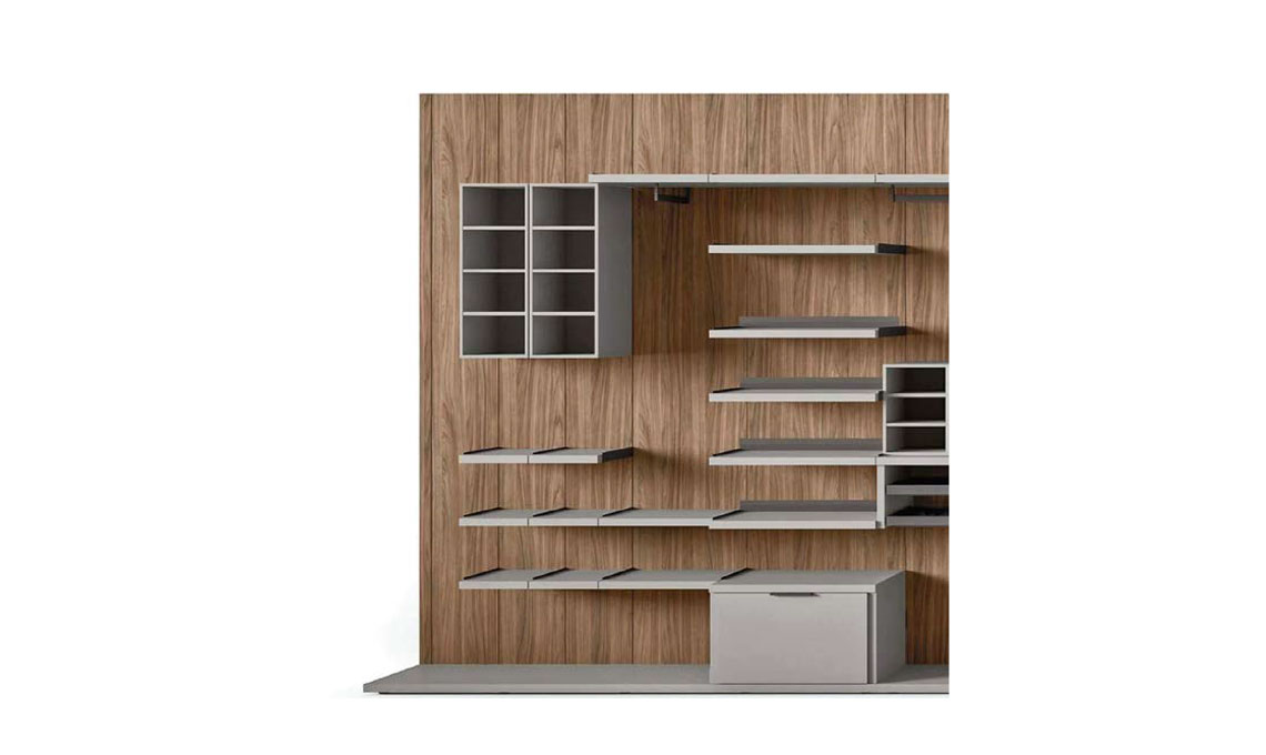 È formata da profili metallici portanti, detti cremagliere, a cui si aggancia tutta l’attrezzatura del guardaroba: ne puoi variare la disposizione qualora nel tempo dovessero cambiare le tue esigenze.