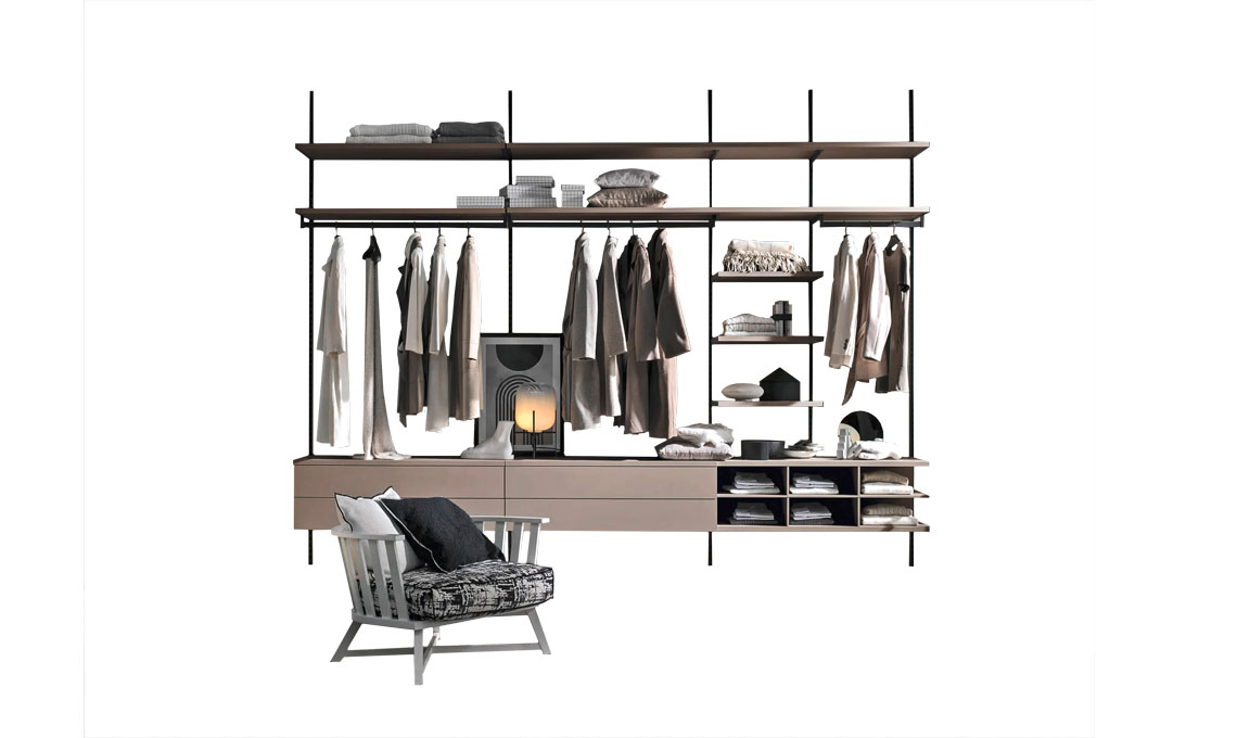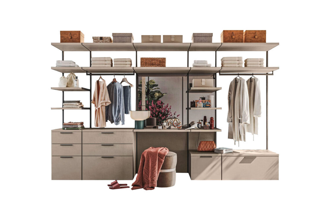 È la cabina armadio ‘per sempre’ perché può adattarsi nel tempo all’evoluzione del tuo guardaroba. Poiché rimane a vista, va tenuta sempre in ordine e spolverata spesso!