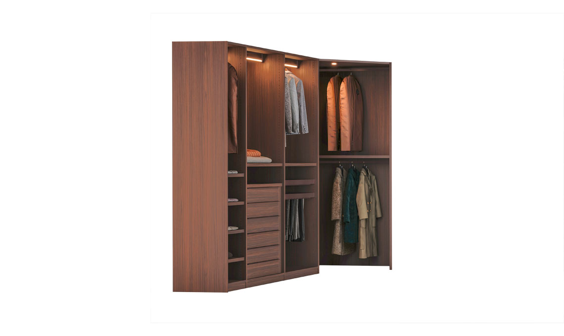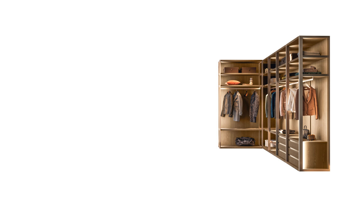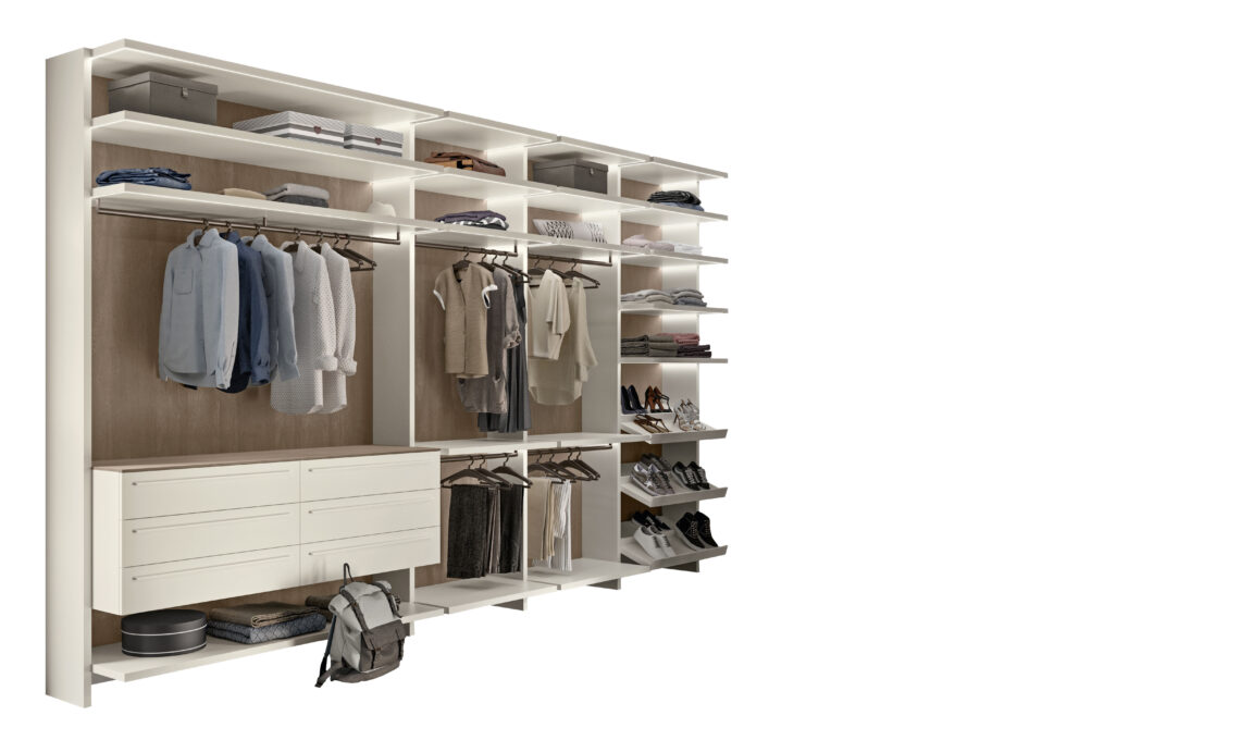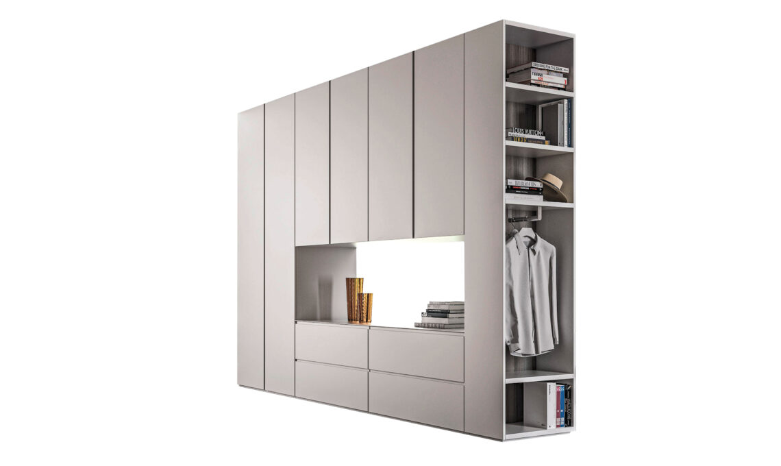 È simile all’armadio tradizionale, ma più versatile e progettabile al cm. Senza ante è una cabina, con ante è un armadio che integra più funzioni e separa gli spazi.