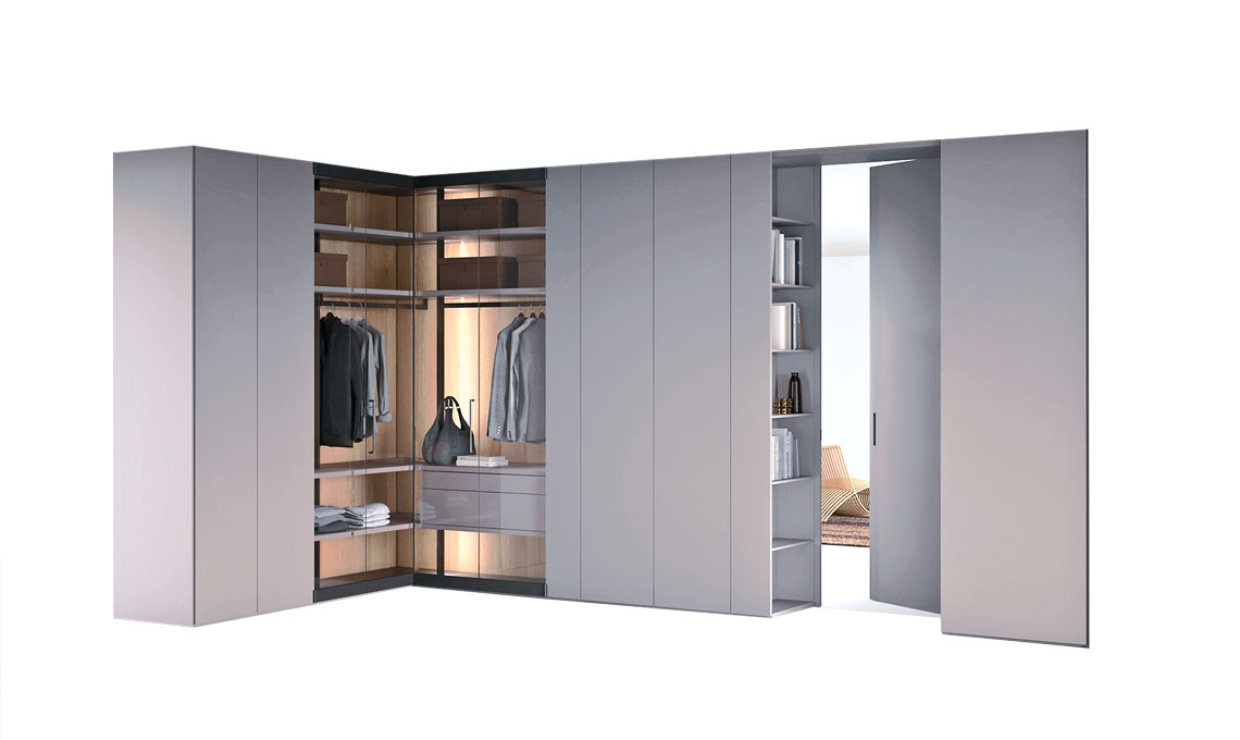 • Se lasciata aperta crea una cabina, mentre quando è chiusa da ante diventa un armadio a prova di disordine e polvere.