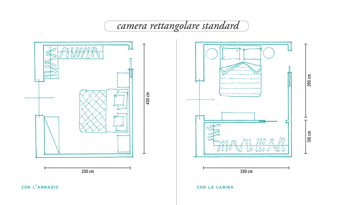 *Non tutte le regione hanno le stesse regole per la dimensione delle stanze. Prima di progettare la cabine armadio, controlla la normativa di riferimento delle tua città.