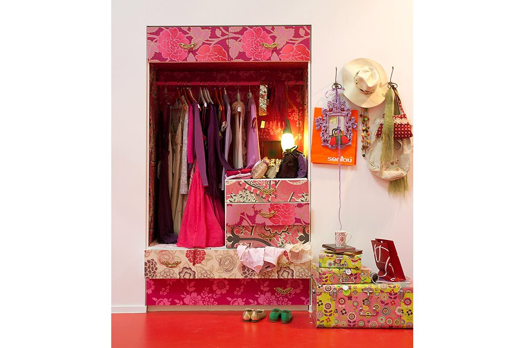 L'allestimento interno: procurati nei grandi magazzini del bricolage, o fai realizzare dal falegname, due cassettiere: una maxi con due cassetti, da tenere a terra e che misuri cm 120x60x50h, più una più piccola, che appoggerai sopra alla prima, di almeno cm 60x60x60h, con tre cassetti. Fattele lasciare grezze e, dopo averne pulito bene la superficie esterna passandola con la carta vetrata, pensa alla loro decorazione. Puoi dipingerle oppure rivestirle con stickers, carta da parati, stoffe e bordi adesivi nelle fantasie più svariate.