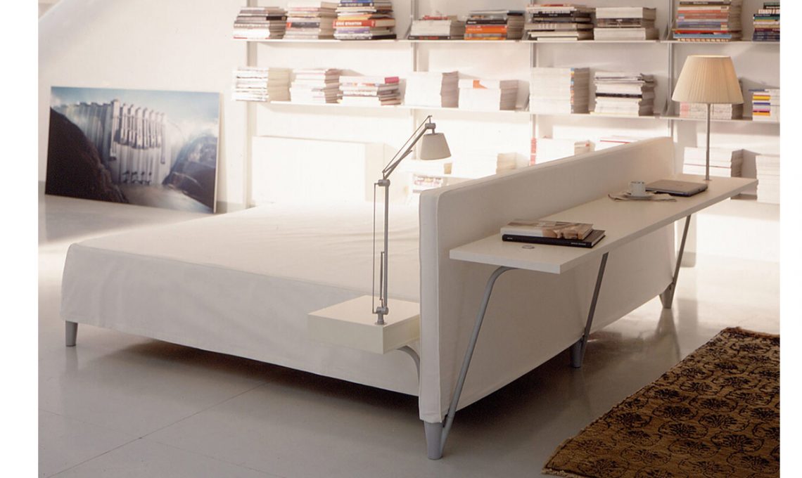 C'è per esempio Twils che ha disegnato una testiera capace di integrare una barra appendiabiti che la rende una piccola cabina armadio! Giessegi e Lago hanno lavorato sul concetto di contenitore per libri e piccoli oggetti creando testiere con porta-riviste e ripiani di appoggio. Mentre Désirée ha reso la testiera flessibile: si piega in modo da creare dei comodi poggiatesta.