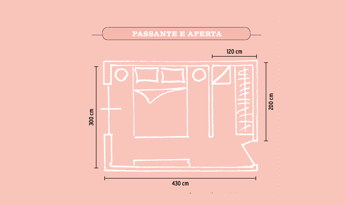 Davanti al letto servono minimo cm 70: se la stanza è lunga 4 metri puoi ricavare la cabina dietro la testiera con una ‘parete’ in legno (non è una struttura fissa quindi si può fare).