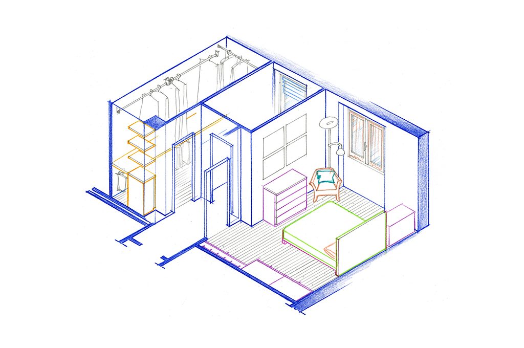 Camilla sta meditando di spostare la camera da letto nel locale di fronte, eliminando due grossi armadi per ricavare unacabina armadio. La cabina vorrebbe ricavarla in una parte dell’attuale camera. Nello spazio rimanente del nuovo locale disponibile desidera invece creare un salottino tv, accessibile dal soggiorno adiacente, da poter unire all’occorrenza. Ci chiede se sia un’idea fattibile, vuole sapere le misure per un guardaroba comodo e ben sfruttabile e spera in un consiglio su come arredare il salottino.