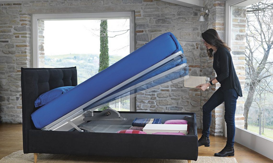 Un'idea furba? Scegli un letto con contenitore per la camera degli ospiti, così avrai anche uno spazio extra per il tuo cambio stagione: nella foto il sistema Folding Box di Noctis [noctis.it]