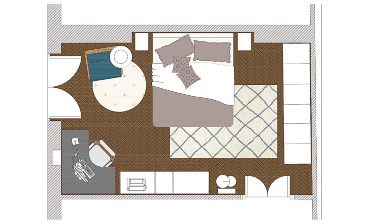 Per dare importanza a un letto matrimoniale semplice, arreda con una carta da parati o una nicchia
