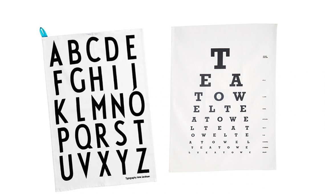 Per i design addicted il canovaccio con l’alfabeto di Arne Jacobsen [Design Letters, €17 il set da 2]. Per chi ha l’occhio da lince è divertente il tea towel ‘Eye test’ [House Doctor €11].