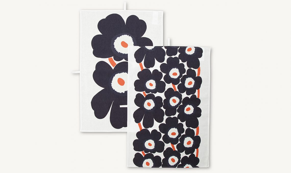 Set di due canovacci con il celebre disegno Unikko [Marimekko, € 32,50 il set da due].
