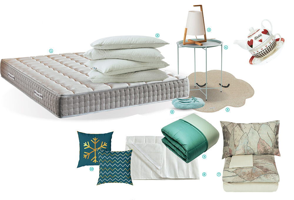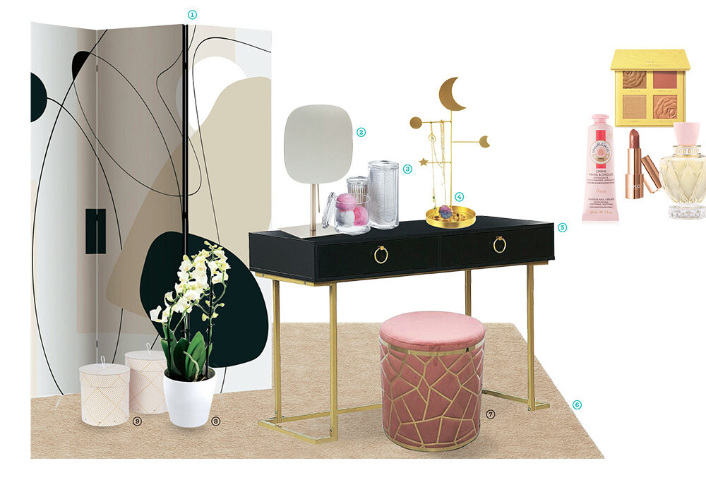 1 appendiabiti con ripiano per le scarpe Lyngdal [Jysk, cm 110x55x155h]. 2 poster Caribbean dream [Desenio, cm 50x70]. 3 cuscino in puro cotone [Bella Vita, cm 40x40]. 4 lampada da tavolo Forså [Ikea, ø cm 15x35h]. 5 tavolino in metallo Sim [Casa, ø cm 46x52h]. 6 set di lenzuola Kiss [Caleffi]. 7 tappeto con delicate fantasie bucoliche [Bonprix, cm 80x150]. 8 tavolino in metallo Wiras [Casa, ø cm 39x40h]. 9 set formato da bottiglia e bicchiere [Sklum]. 10 lenzuola Festa di Primavera [Mirabello Carrara]. 11 scatola con multipresa da 6 spine che nasconde i cavi [Amazon]. 12 specchio da parete in acciaio curvato Ekne [Ikea, cm 70x150]. 13 Divano letto Space [Noctis, cm 190x80x85h].