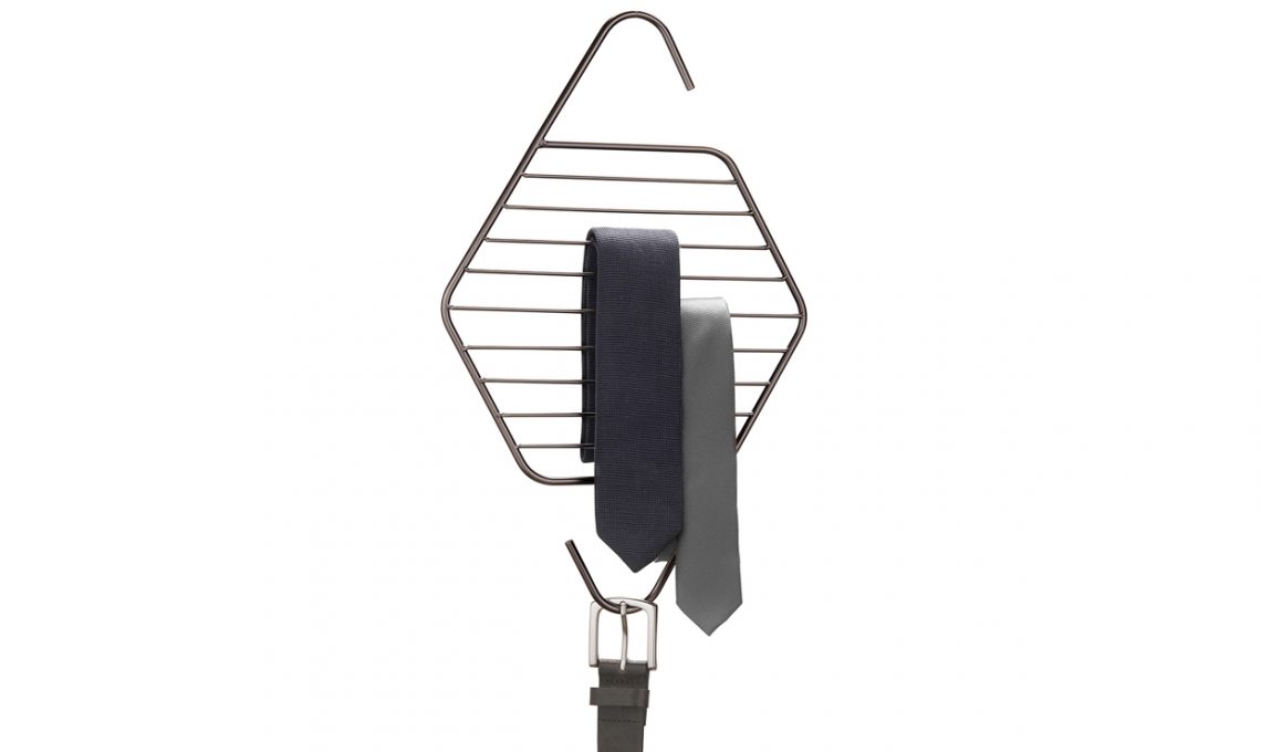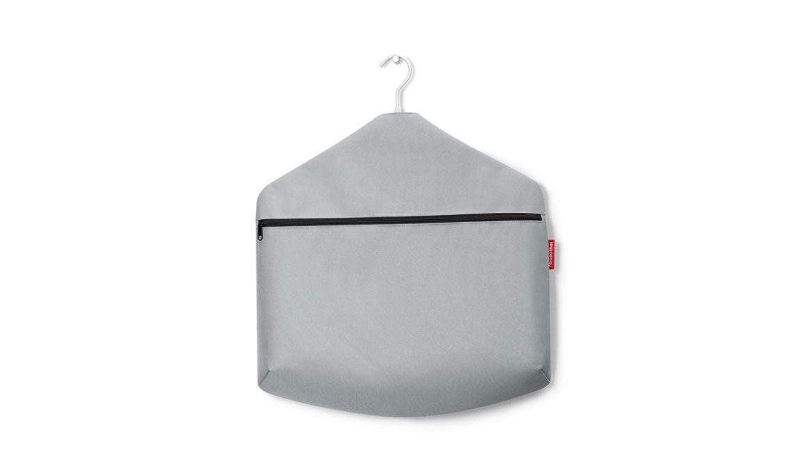 Appendiabiti in alluminio adatto ad abiti, giacche e cappotti: la tasca in poliestere è utile per riporre sciarpe e guanti o una cintura [Reisenthel, €19,95]
