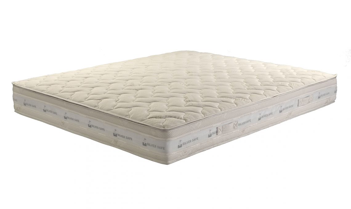 Ergonomico. Tekno Gel abbina la capacità di accoglienza e la freschezza del Memory Gel a rigidità e portanza del Watercell; la fodera Silver è antibatterica [Fabricatore, cm 160x190x22h da €990].