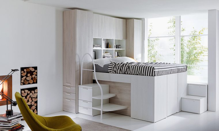 Eco e salvaspazio Spray &Now To Sleep [Ren €25]. Letto SpazioBed [Cinius, cm 166x206x120h da €2.300].