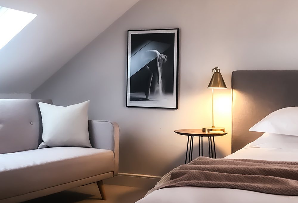 Tailor made Lampada Catalitica [Locherber €95, il kit lampada + ricarica da 500 ml]. Letto Marquis [cm 160x200 €4.190] è completato da testiera rivestita [€2.015] e gonnellina coprimaterasso + base [€780], Tutto [Hästens].