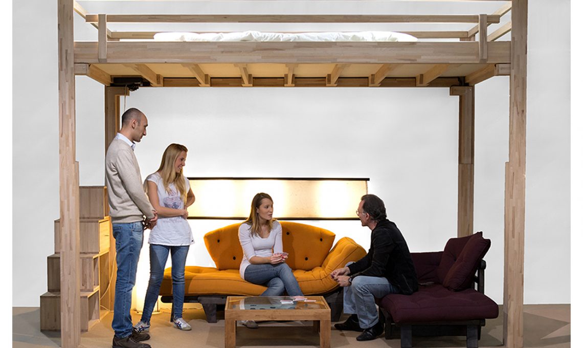 Ma ci sono anche i letti saliscendi: telecomandati, di giorno 'stazionano' sul soffitto per lasciare campo libero ad altre funzioni, ma di sera calano a terra e danno tutto il comfort di un normale letto matrimoniale.