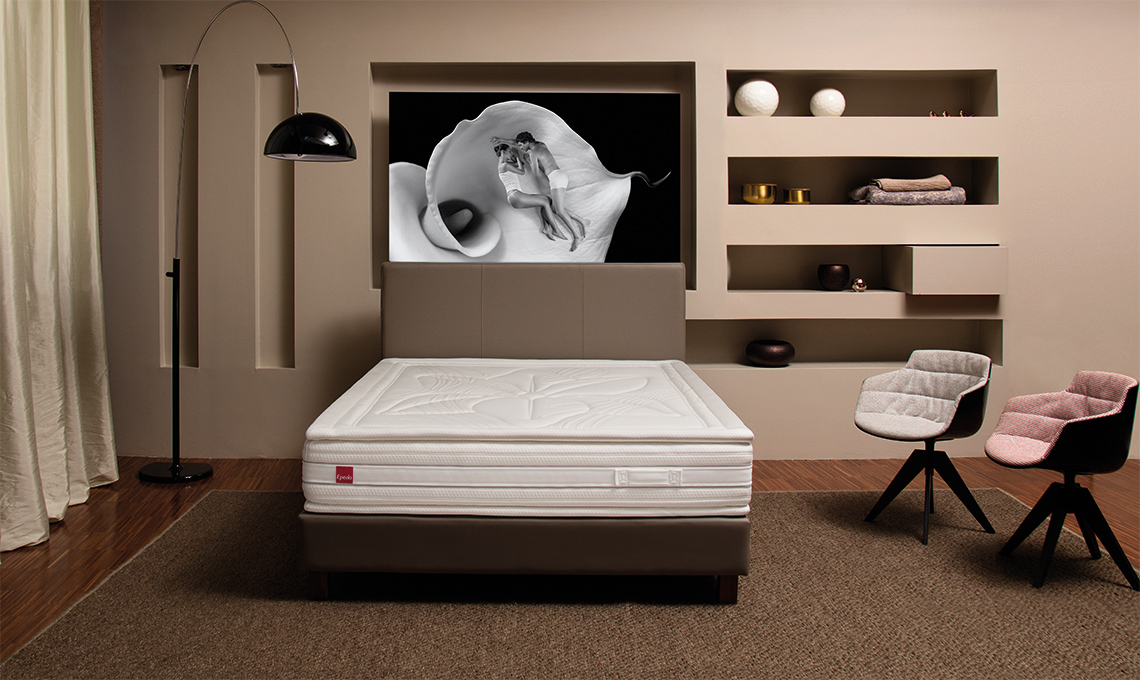 Materasso con una combinazione di 3 materiali: lattice microforato, Memory Foam e Schiuma Tediber ad alta resilienza e ipoallergenico [Tediber, disponibile solo on-line, letto singolo a partire da €400].