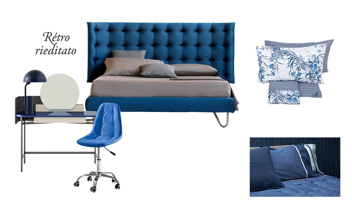 Il blu notte che si posa su imbottiti e complementi dà un tocco moderno alle linee che si ispirano al passato. Come vestire il letto? Un letto importante, scenografico e dal colore acceso richiede, di base, lenzuola e copriletti in tinte unite (o falsi uniti) in tessuto prezioso come il raso di puro cotone da abbinare a una fantasia grafica o floreale tono su tono, in linea con la nuance di testata e giroletto.
