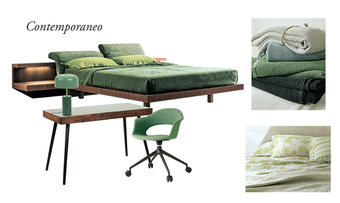 La stanza da letto si è aperta a nuove funzioni, ospitando sempre più spesso l’angolo lavoro/hobby. Arredi di stile e qualità, tessili naturali, e una postazione office che assicuri estetica&ergonomia sono gli ingredienti per conciliare l’uso diurno della camera da letto al buon sonno notturno.