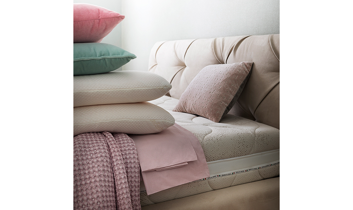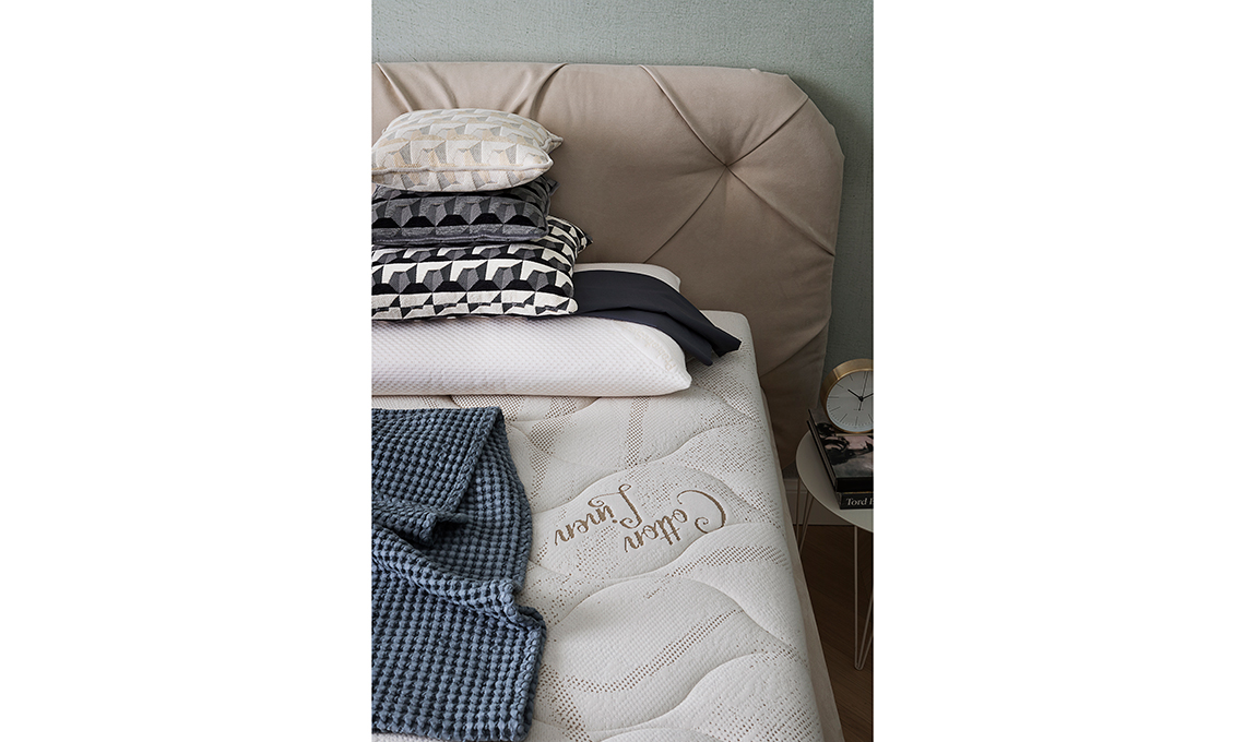 I prodotti utilizzati per lo styling sono il copriletto Primula, il kit sacco in cotone (composto da sacco copripiumino, lenzuolo sotto con angoli e coppia di federe con chiusura a busta) e la coppia di cuscini Memory Moore alti 12 cm. Il materasso è Bio Memory 5.0. Tutti i prodotti sono di Perdormire.