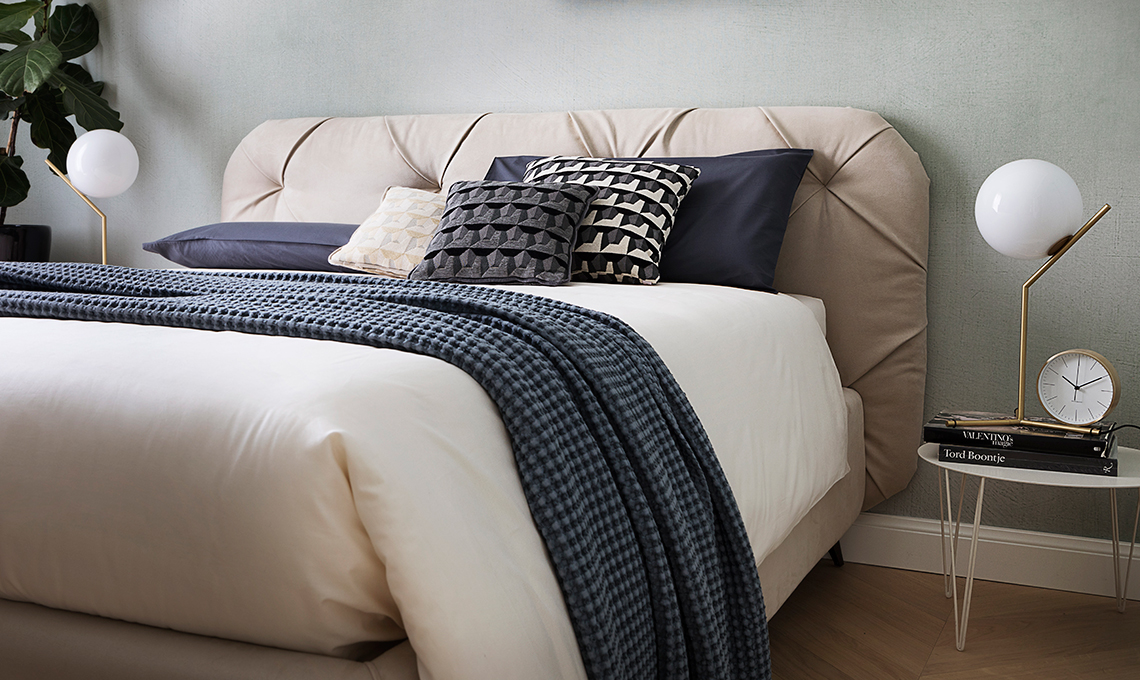 Si tratta di un modello contenitore salvaspazio sfoderabile con una testata imponente lavorata artigianalmente con finitura capitonné, un grande classico, quindi. La sfida è aperta: si può arricchire e personalizzare un letto già molto decorativo? Scoprilo nella gallery!