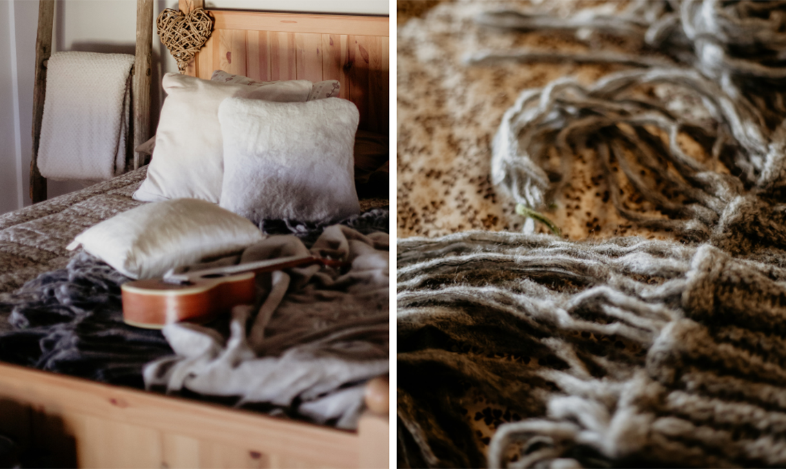 Scegli materiali caldi e naturali dai colori neutri o terrosi. Un bel piumino, una coperta in lana e un lungo scaldapiedi ripiegato sul fondo del letto renderanno la stanza più confortevole.