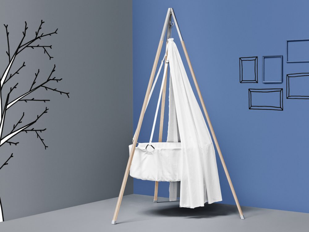 Culla sospesa disegnata da Stig Leander Nielsen che l’ha sviluppata in collaborazione con un team di ostetriche. Concepita come un bozzolo, il neonato è cullato da morbide oscillazioni come fosse nella pancia della mamma. Una piccola meraviglia del design scandinavo che può trovare posto anche nel salotto. La culla può essere agganciata al treppiede, oppure sospesa direttamente al soffitto tramite un gancio.