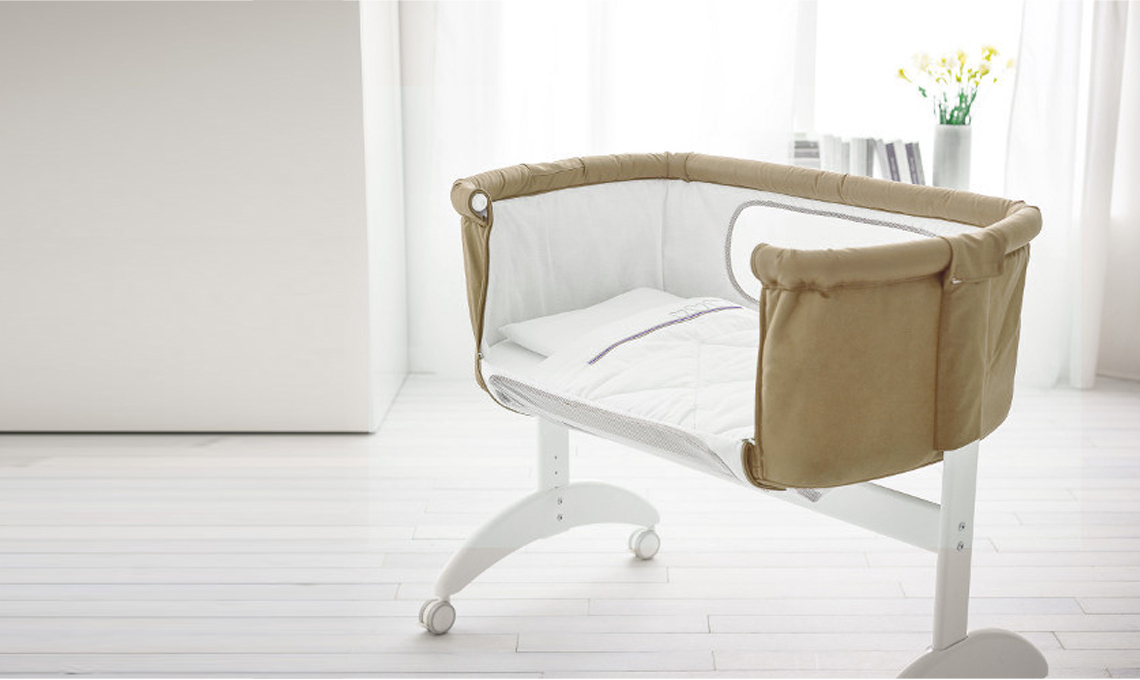 Maya è morbida e avvolgente come l’abbraccio della mamma. La culla è realizzata con un rivestimento imbottito e due oblò laterali in rete che permettono la giusta aerazione il controllo del bambino durante il sonno. Facile da spostare grazie alle quattro ruote (di cui due frenate) è particolarmente utile durante i primi mesi perché dotata di un sistema di ancoraggio al letto dei genitori che permette di dormire accanto al bambino in completa sicurezza. Realizzata in legno di faggio massello è rifinita con vernici atossiche.