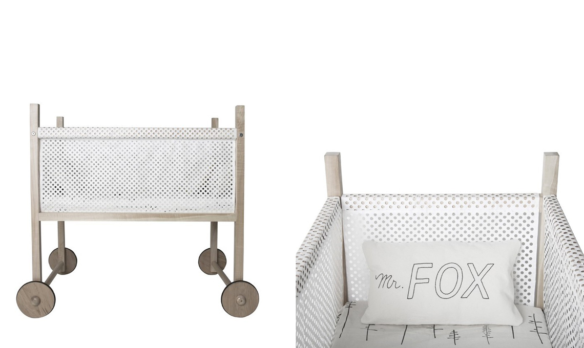 Bienvenida è la culla del marchio Krethaus. Design nordico, minimale e allo stesso tempo davvero originale. Realizzata in legno ha le sponde laterali rivestite di materiale impermeabile forato e candido come la neve. Il design è completato da quattro grandi ruote per spostarla agevolmente tra le stanze.