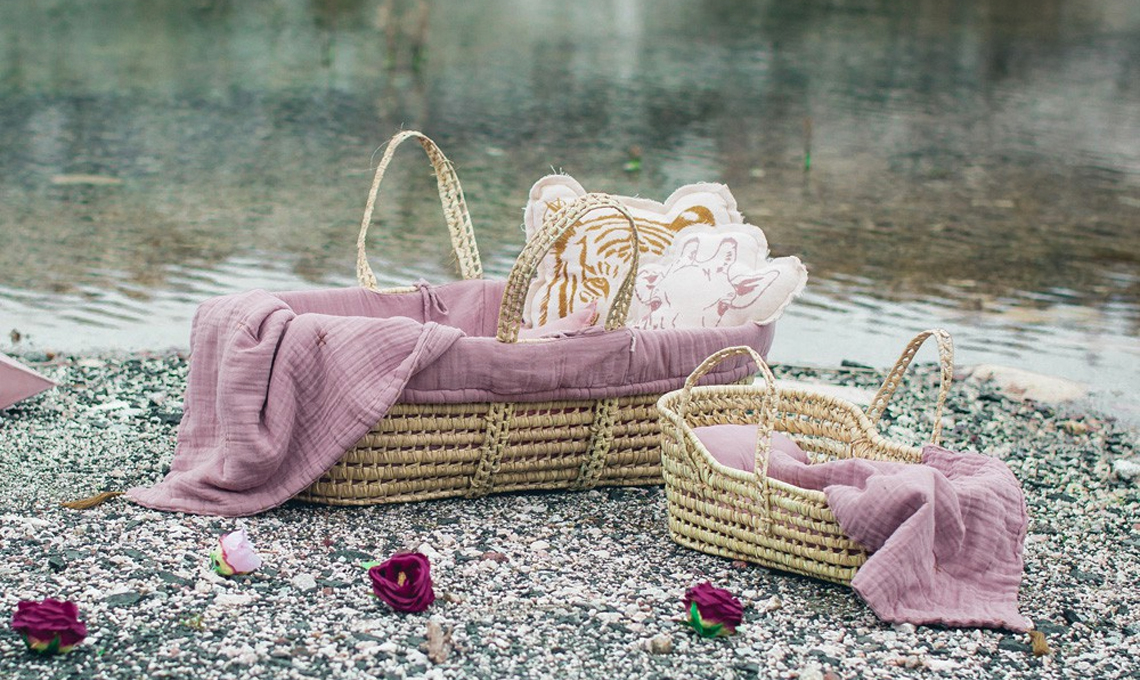 La culla è la rivisitazione di un classico della puericultura. Cesta in vimini con elementi in cotone, può essere trasportata facilmente da una stanza all’altra. Leggera e salva spazio è l’ideale come culla da viaggio.