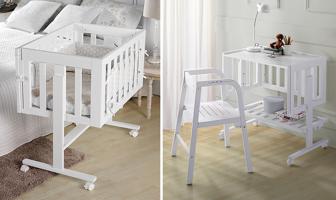 Micuna è una culla pensata per consentire in co-sleeping mediante un sistema di ancoraggio al letto dei genitori. Ha un sistema di regolazione in altezza che consente 14 livelli differenti e la spondina è ribaltabile in 4 posizioni. La culla è in legno di faggio laccato bianco ed è dotata di quattro ruote con freno. Buon esempio di prodotto trasformabile, la culla Cododo si converte in scrivania o box giochi.