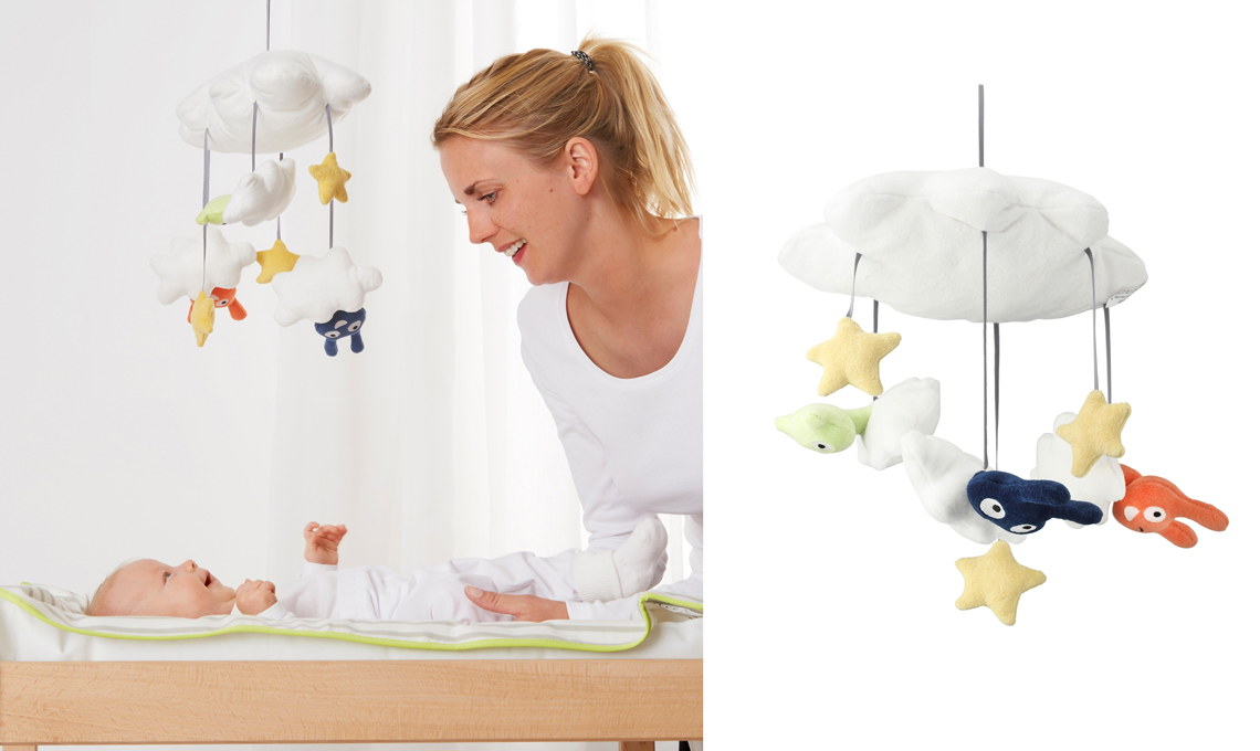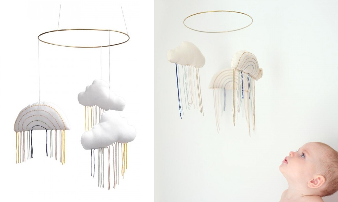 Una giostrina in puro cotone biologico, da appendere sopra il lettino per decorare la cameretta e per far sognare il tuo bambino tra magici arcobaleni e soffici nuvole. Il design è danese mentre la produzione artigianale (fair trade) viene realizzata in India prestando attenzione ai particolari e alle finitura a mano.