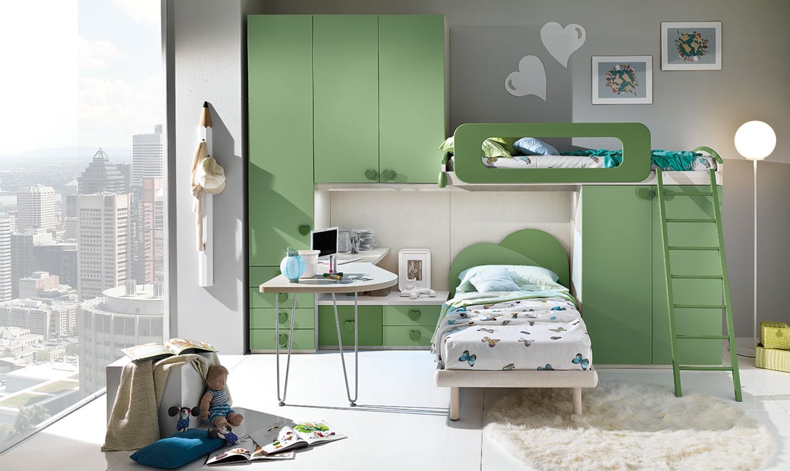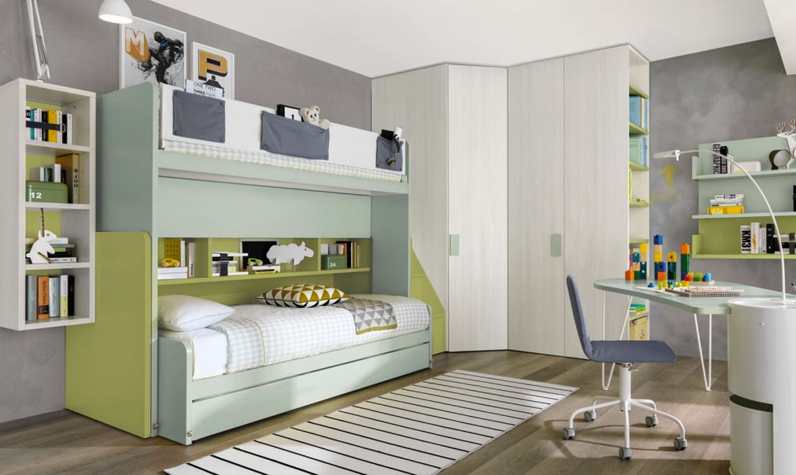 Se è vero che condividendo la camera con un fratello o una sorella, il letto a castello è la soluzione ottimale, la camera singola può essere dotata di un letto a soppalco per recuperare spazio prezioso. Nelle stanze più grandi può essere un’ottima idea per dividere lo spazio tra fratelli in modo creativo.