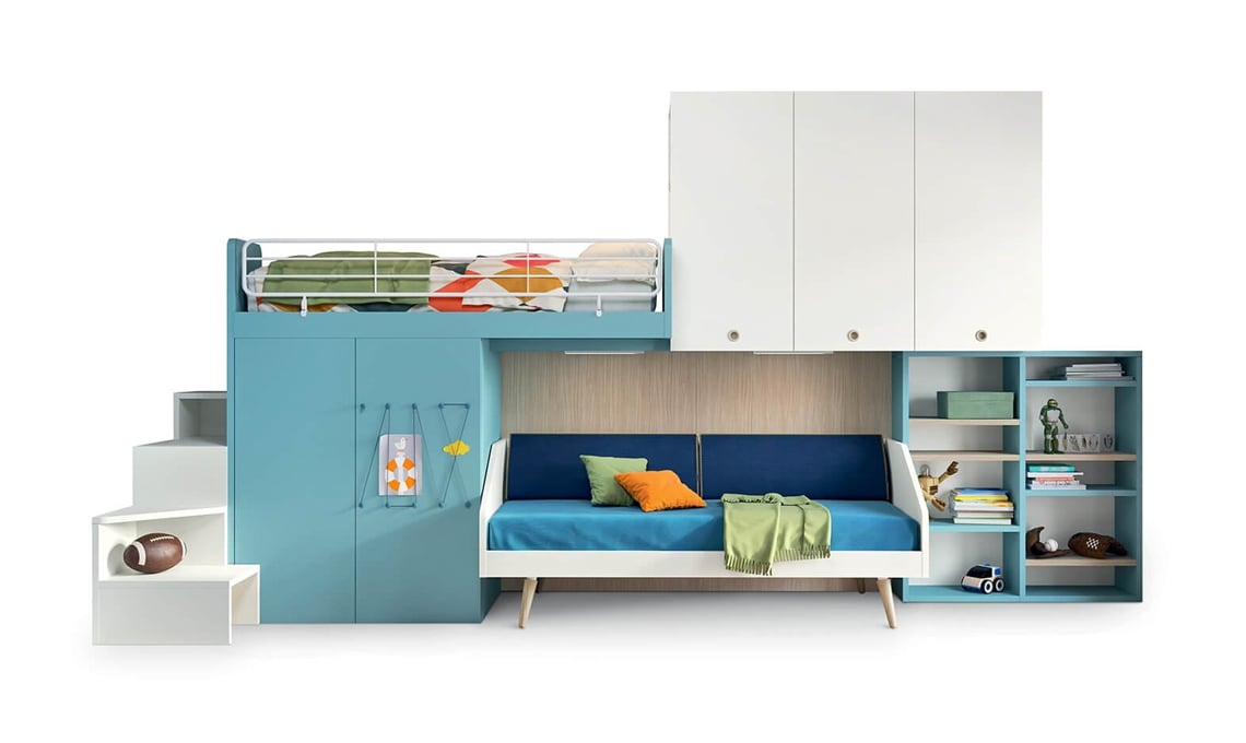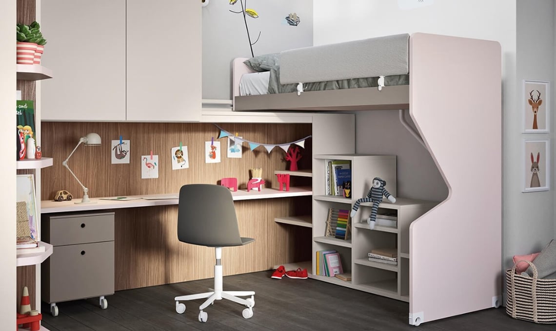 Se i bambini hanno meno di 8 anni è possibile usare la parte sottostante come zona gioco per trasformarla successivamente in armadio o dotarla di scrivania estraibile.
