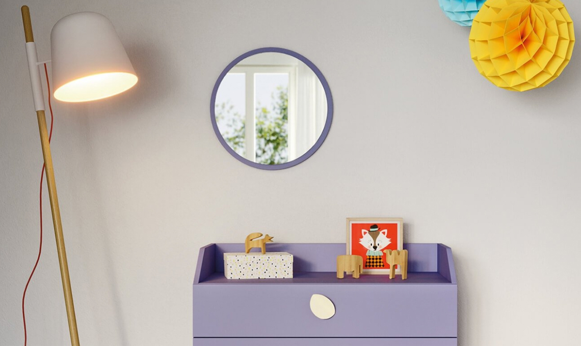 Inserire uno specchio nella camera dei bambini è molto utile perché, guardandosi, sarà cosciente della propria immagine fin da piccolo. Prima attraverserà la fase del riconoscimento e con il passare del tempo verrà usato per emulazione e gioco.