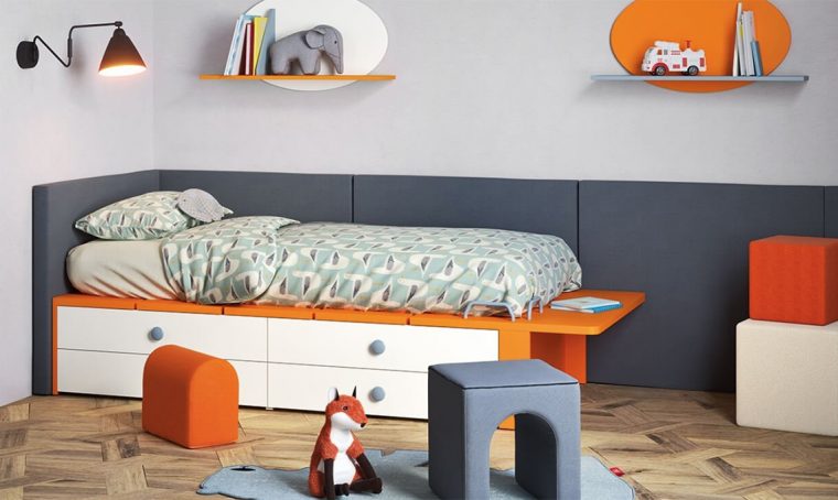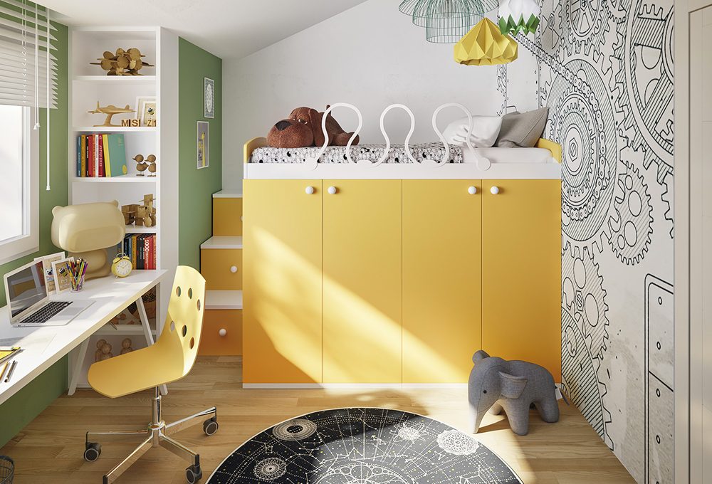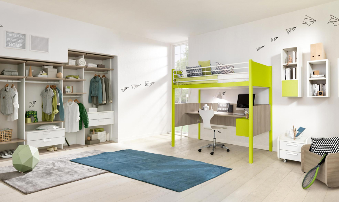 Anche il verde oliva, nelle sue varie tonalità è un colore adatto alle camerette. Il letto a soppalco Nidi è incentrato su una sfumatura brillante e intensa mentre nel letto Skid sempre di Nidi il verde oliva diventa chiaro e delicato.