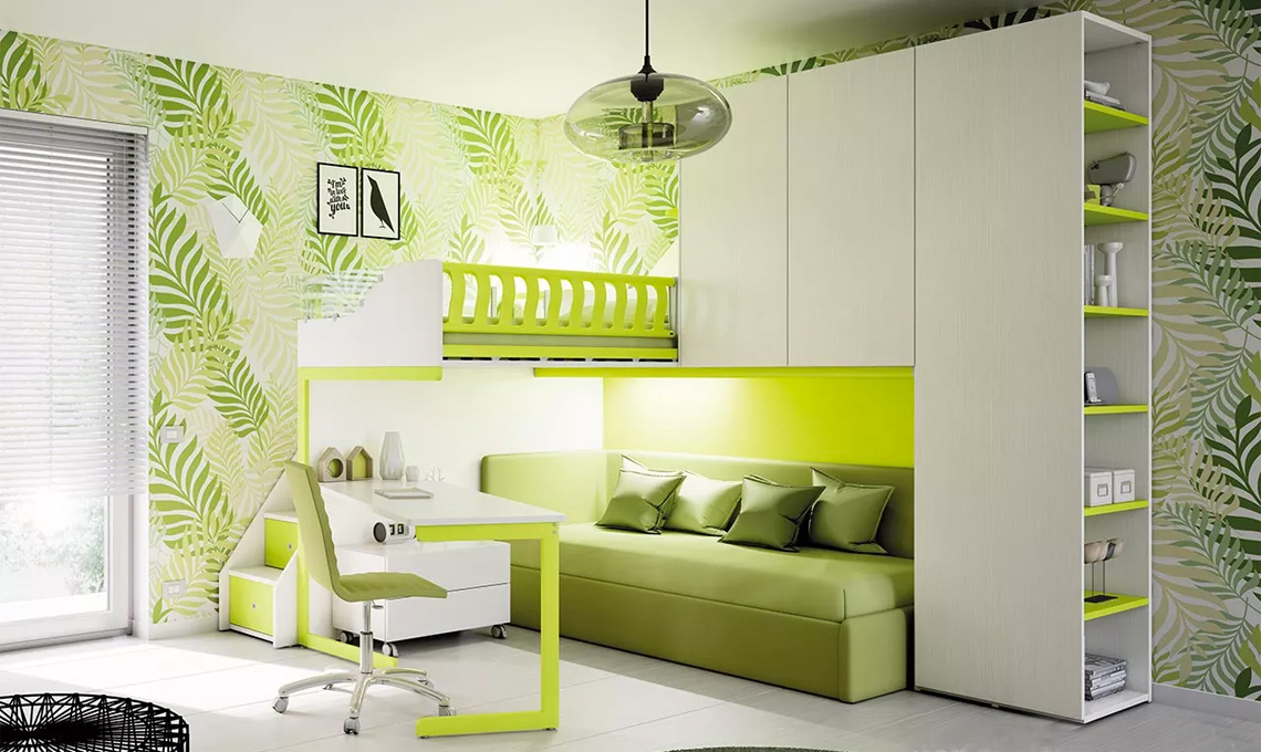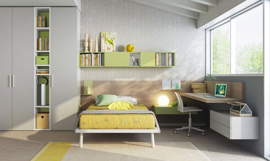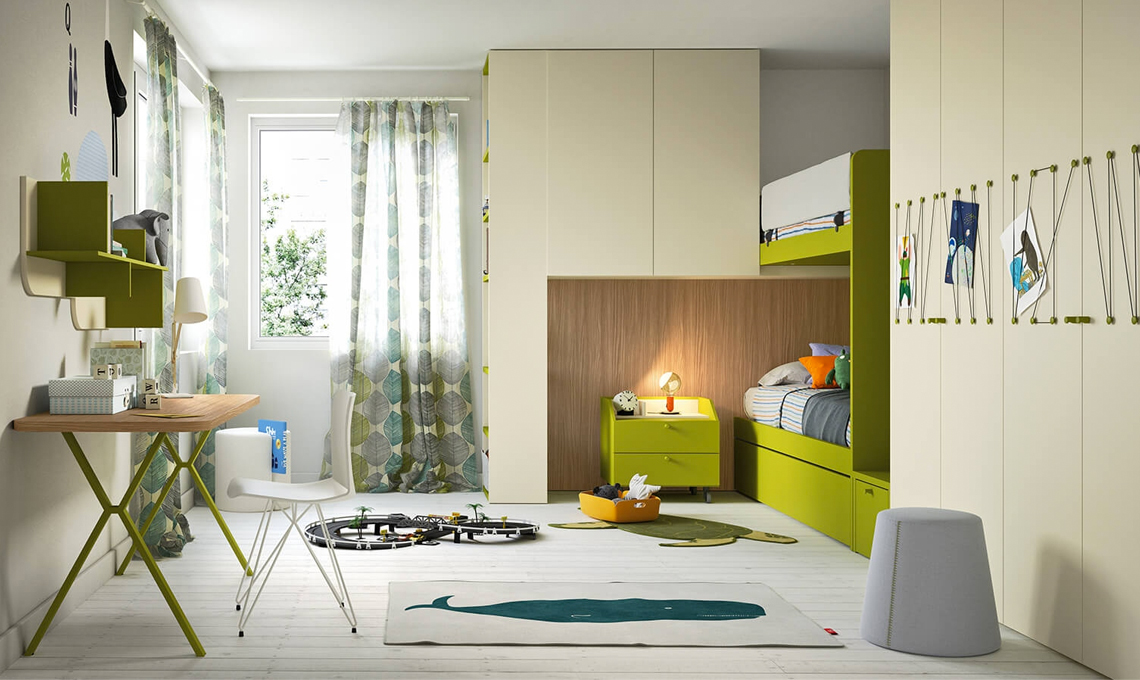 Scegli la cameretta nei toni del verde, metterai d'accordo maschi e femmine con un colore allegro che rimanda ai toni della natura