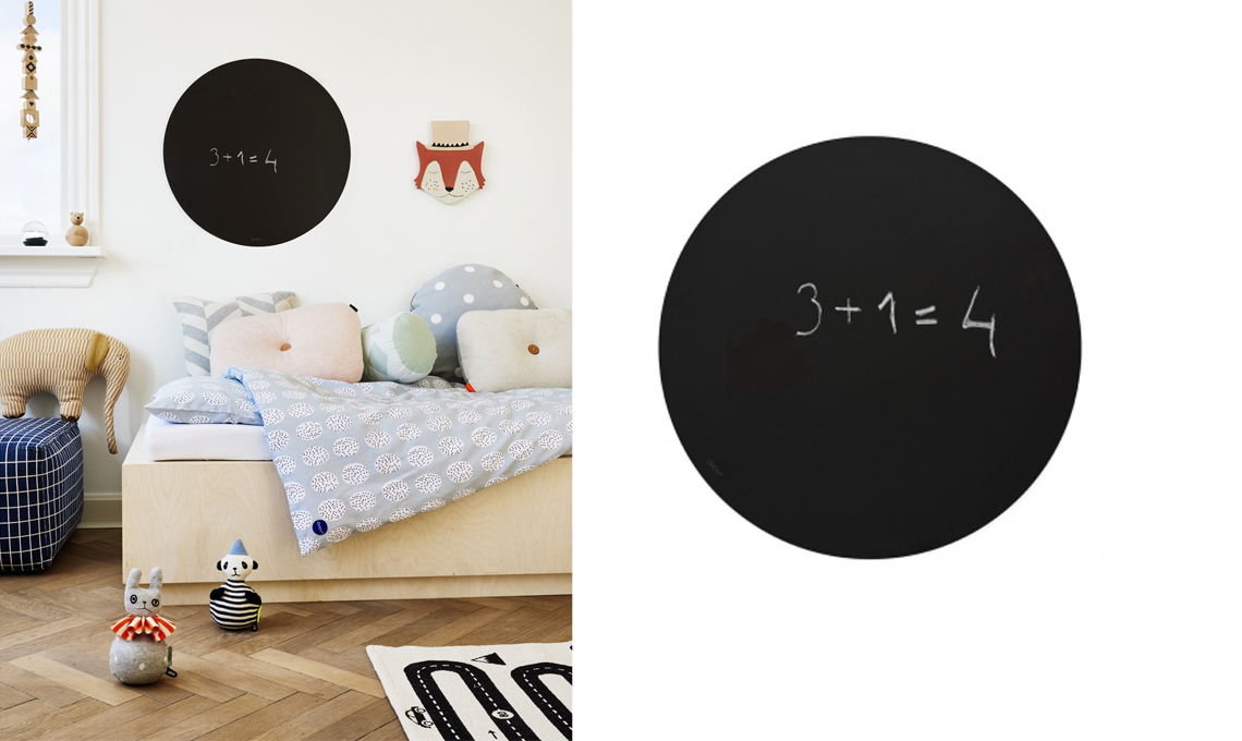 OYOY è ispirato al classico design scandinavo con un tocco di semplicità e di design giapponese. Nella collezione di accessori è presente anche una lavagna rotonda su cui dare spazio alla propria creatività.