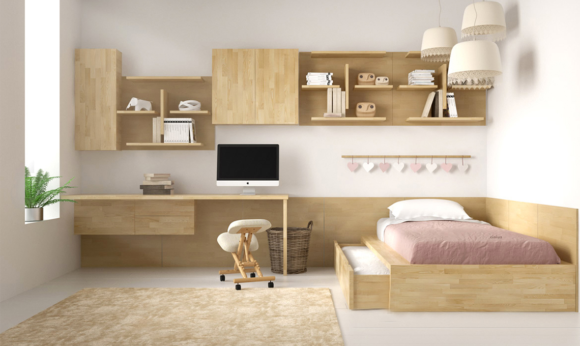 Il letto Comodo-SL è un letto salvaspazio con secondo lettino estraibile a scomparsa, in solido legno massello di faggio. È Sicuro, affidabile e funzionale.