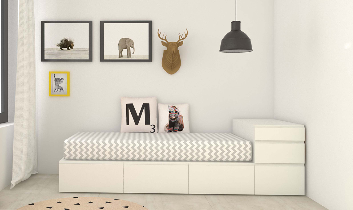 Con le sue linee moderne, l'estetica semplice e il design salva spazio, il letto singolo River è il benvenuto in tutte le stanze Una panchina ai piedi del letto può servire come un piccolo sedile o deposito per libri e giocattoli preferiti.