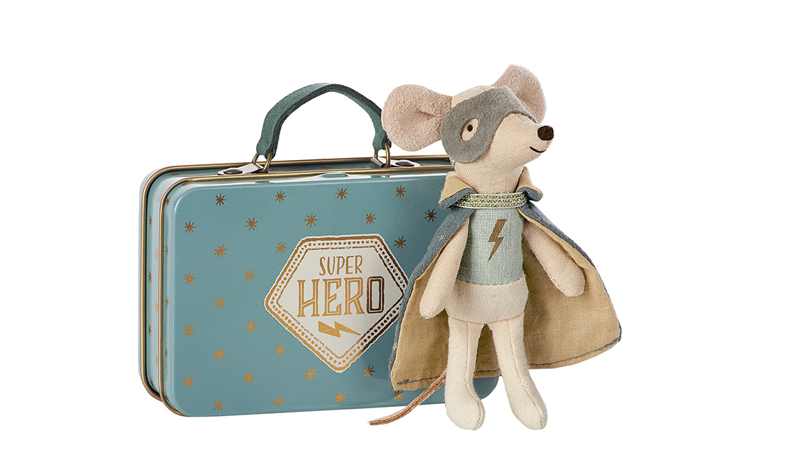 È un supereroe in miniatura il topolino in valigetta [Maileg €30 su » lecivettesulcomo.com].
